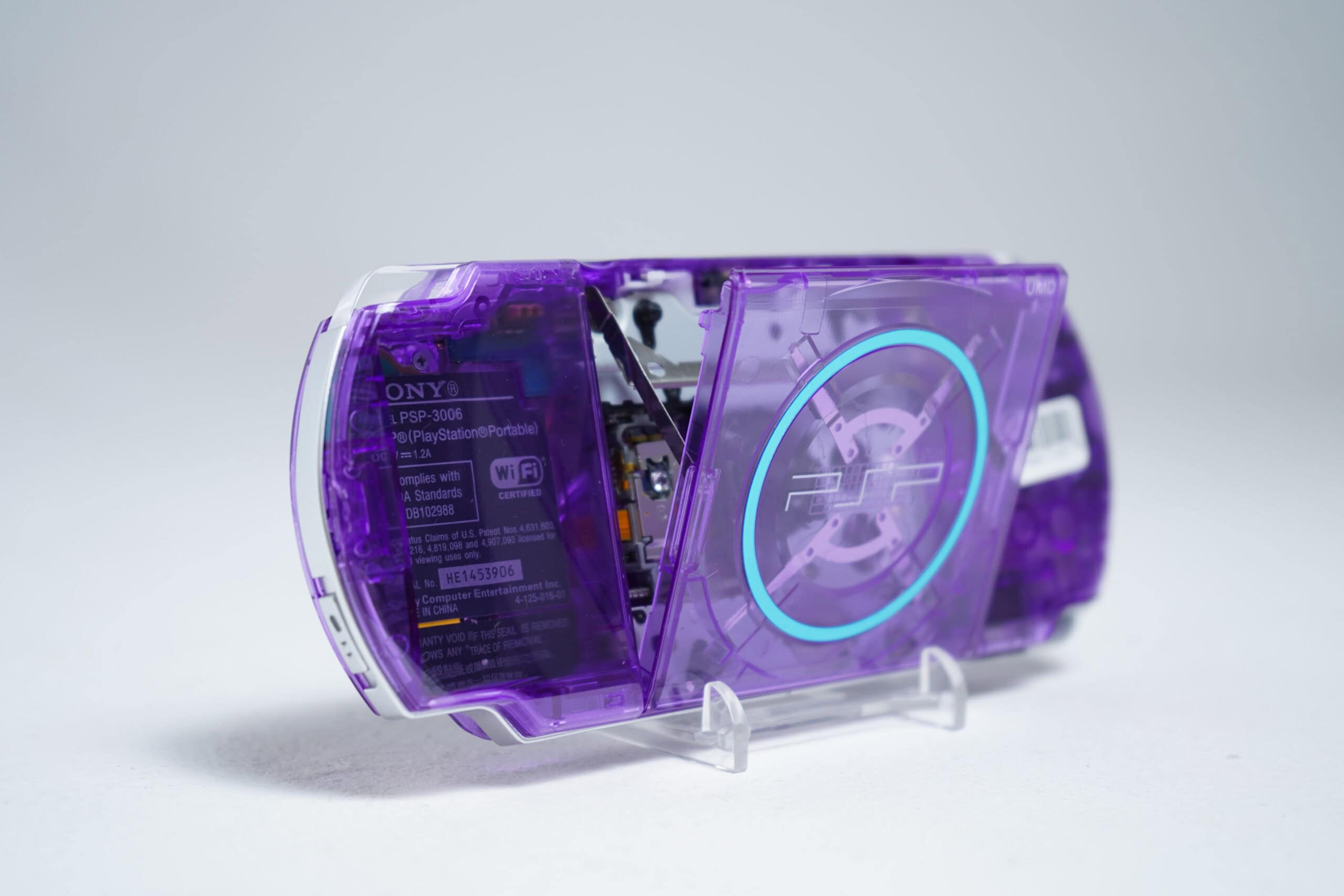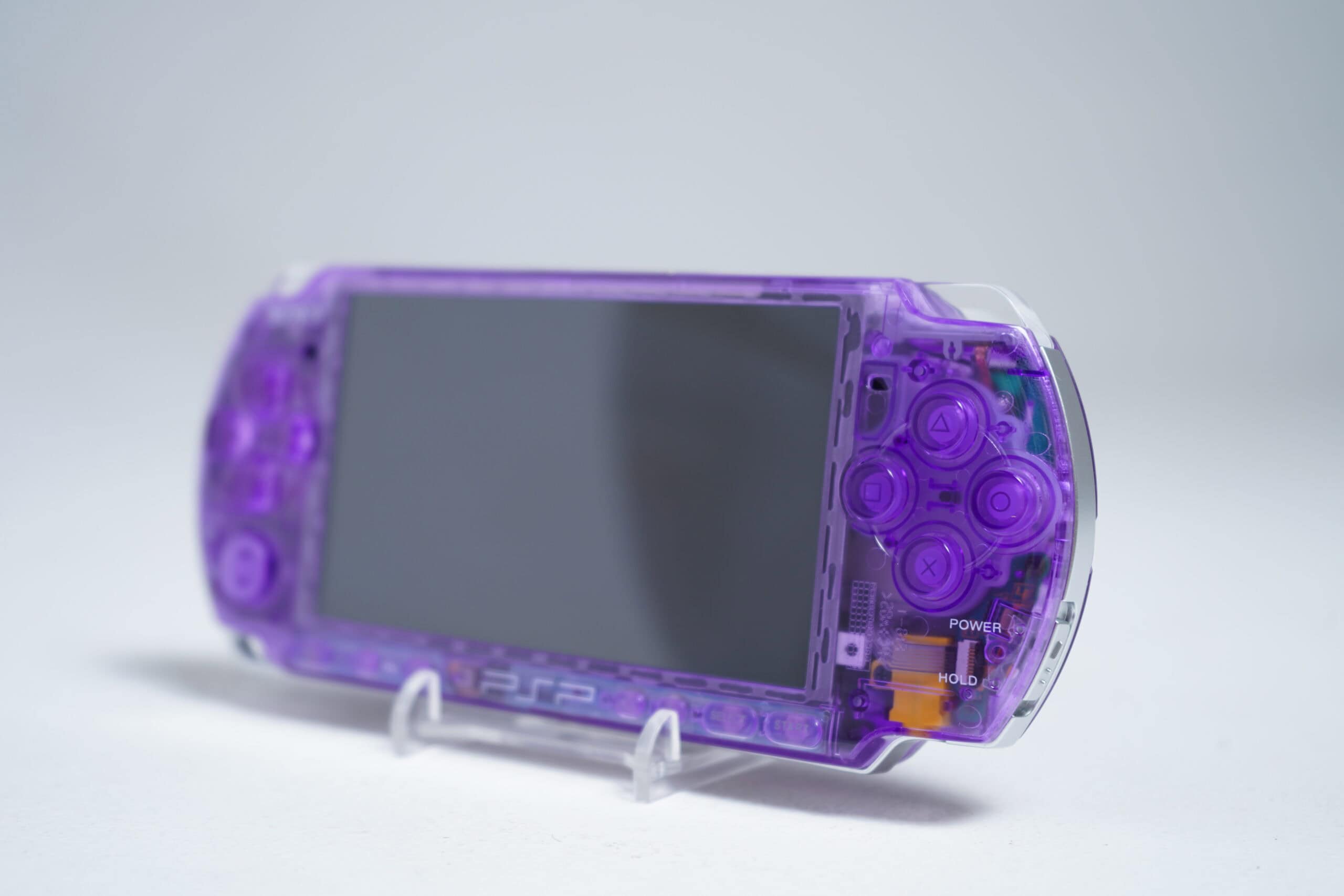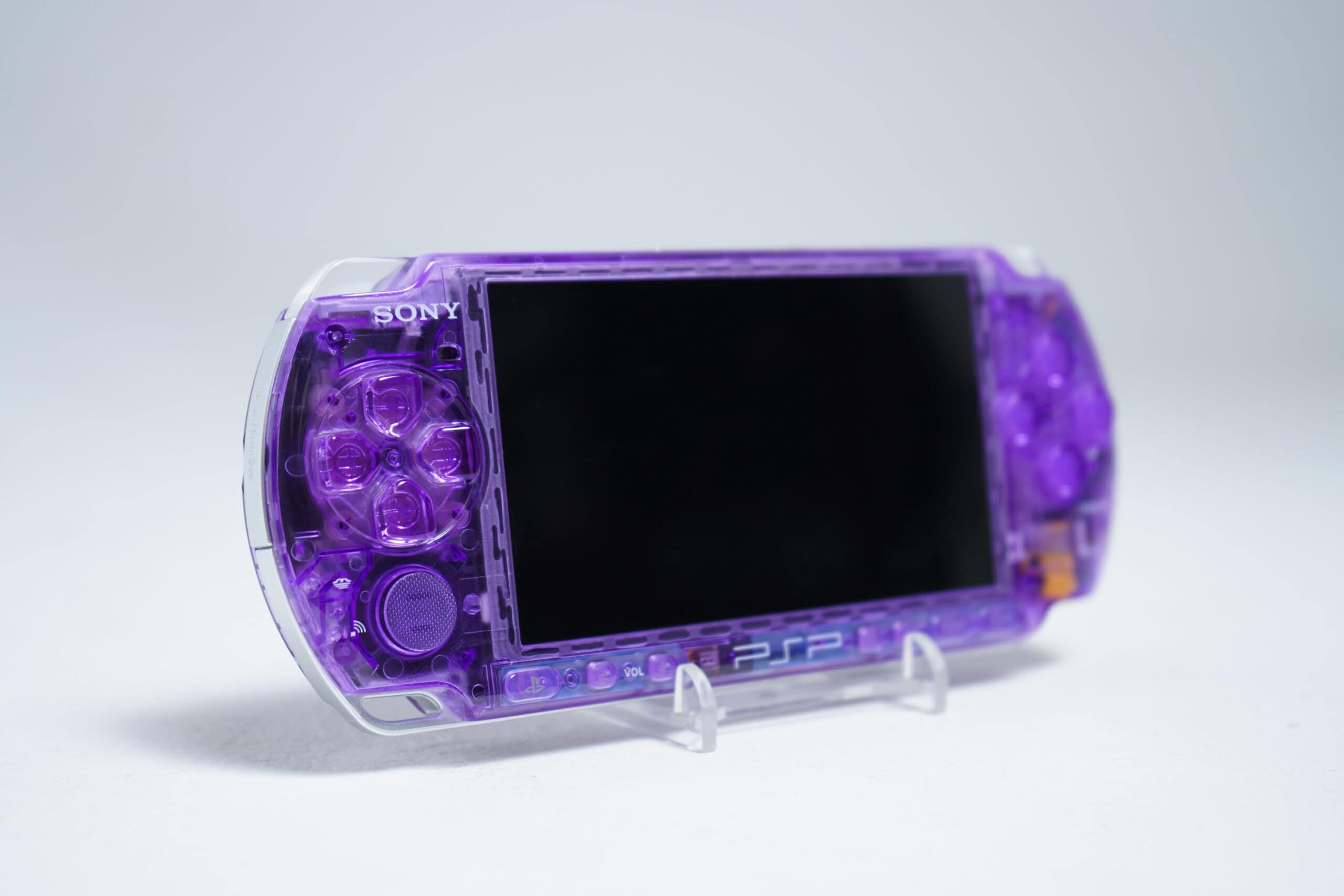 Sony PSP-3000 handheld gaming console in purple haze. Features a 4.3-inch screen and UMD drive slot, 100% original components.